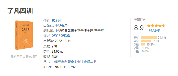 今年我才真正读完这本书,认为它真的能改变一个人。作者袁了凡分享了自己的人生经历和对命运的思考,他通过亲身经历和与云谷禅师的对话,让我们明白了命运和人生的关系,以及如何通过改变自己来改变命运。