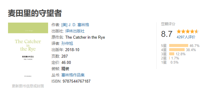 推荐理由:这本《麦田里的守望者》是我在迷茫中找到自我认同的一本书。它让我明白了每个人都会有迷茫和困惑的时候,这是成长的必经之路,我能做的就是勇敢地面对自己的困惑,继续寻找答案,而不是逃避。