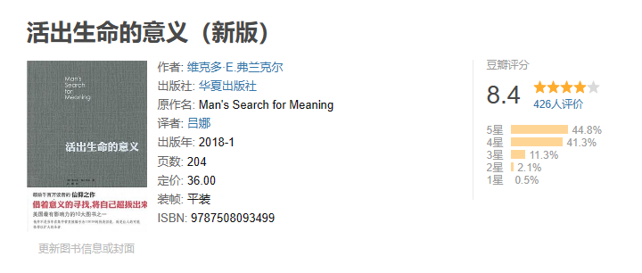 推荐理由:这本《活出生命的意义》曾经感动了千千万万的人,它也是我在迷茫中找到生命价值的一本好书。