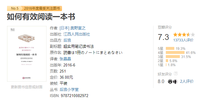 不知道你是否留意,这五本书在豆瓣的评分都不高,看起来也不难读,可是每本书里面提到的读书方法却相当有用。