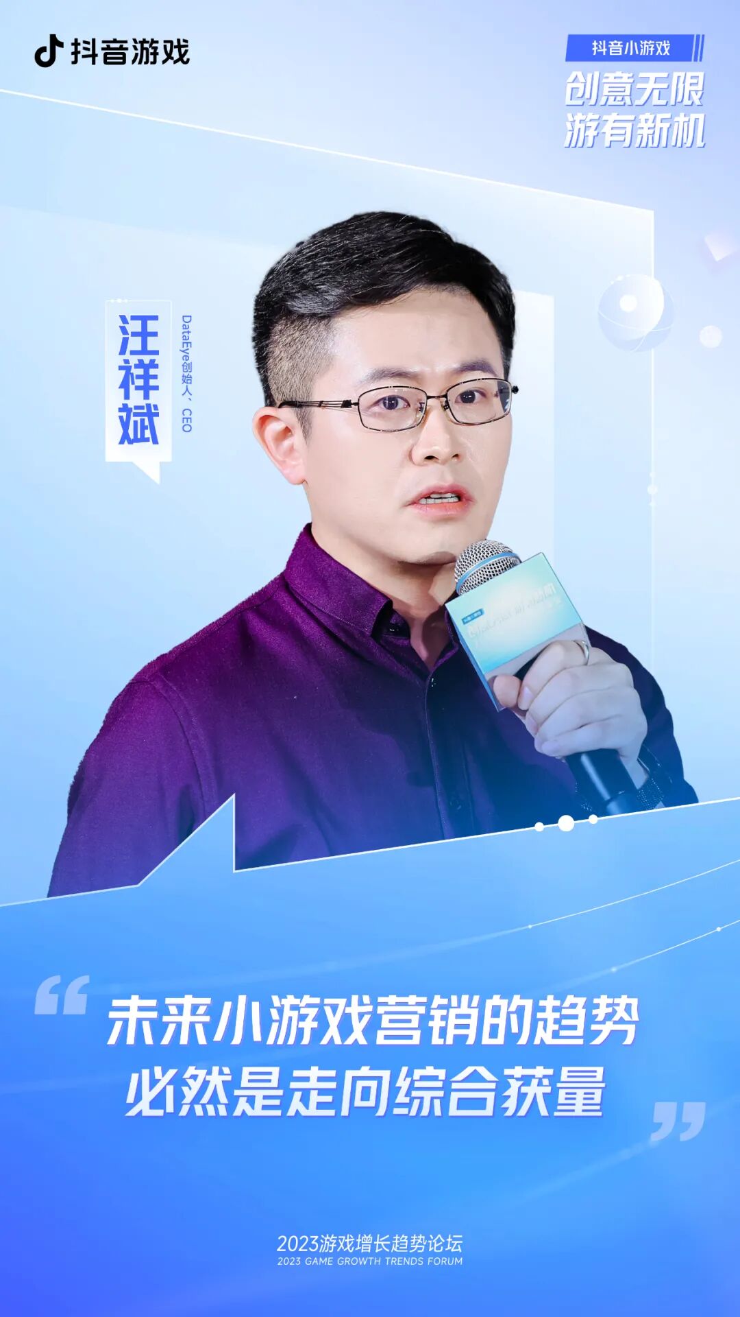 我是来自DataEye的CEO汪祥斌,今天下午,由我来为大家分享关于移动游戏营销包括小游戏发展的趋势。接下去我们会从整个今年游戏的大盘,包括到小游戏的一些指数数据,来为大家分享一下今年小游戏整体发展的一些趋势。