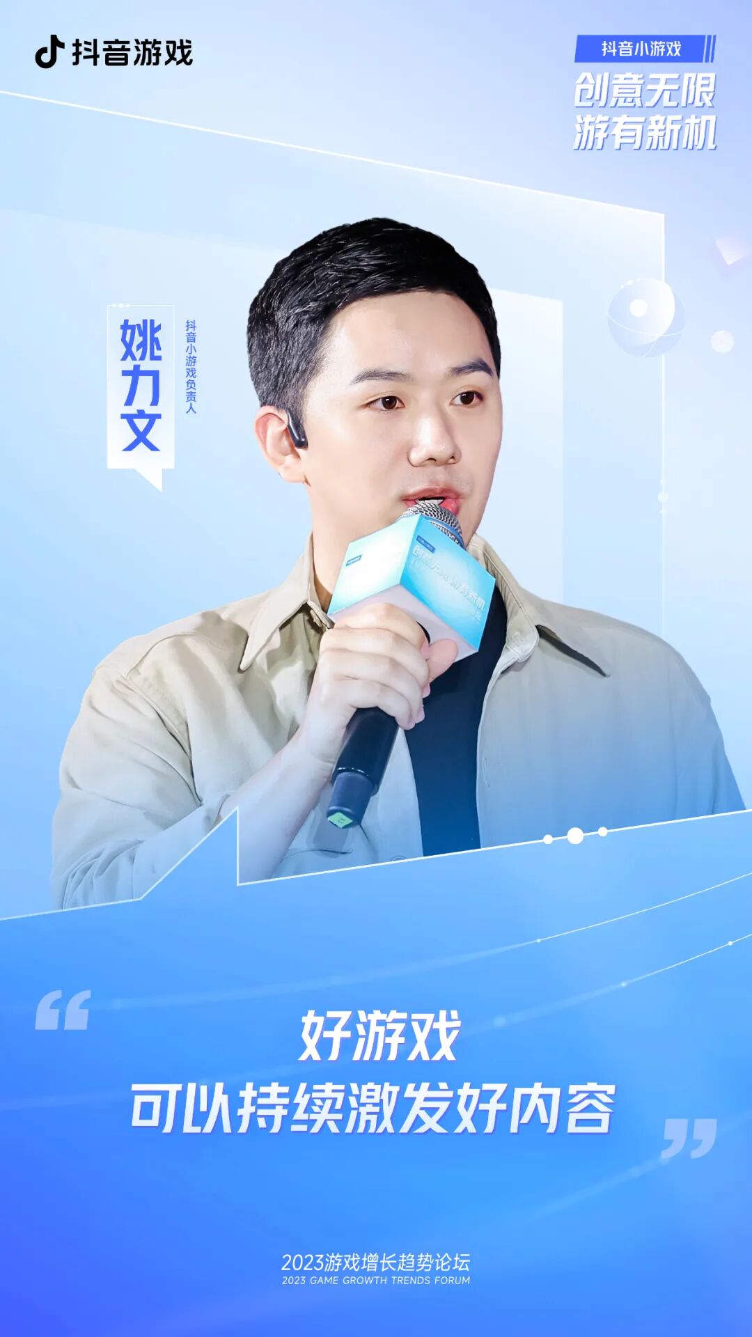大家好,我是抖音小游戏的姚力文。