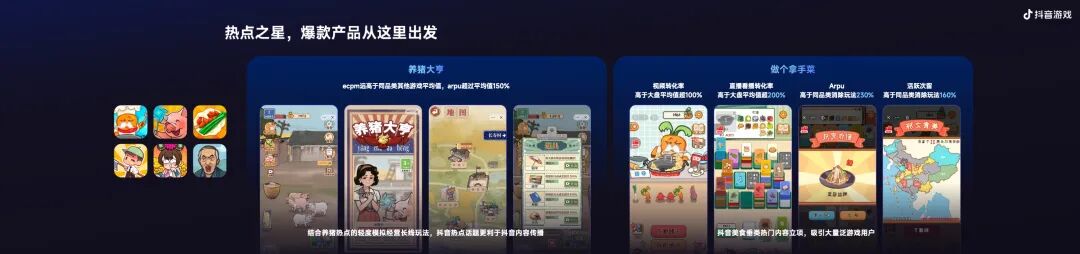 以及更利于轻快迭代的IAA产品,我们推出了「热点之星」计划,帮助更多的IAA厂商,可以基于抖音内的热点进行创意立项,打造刚多的爆款游戏。