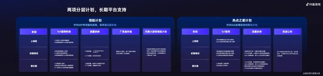 同时,在激励政策牵引上,我们也分别针对IAA和IAP推出了,更利于长线产品回收的「IAP领航计划」,通过资源和支持,以及广告金的补贴,帮助厂商更好的长线经营。