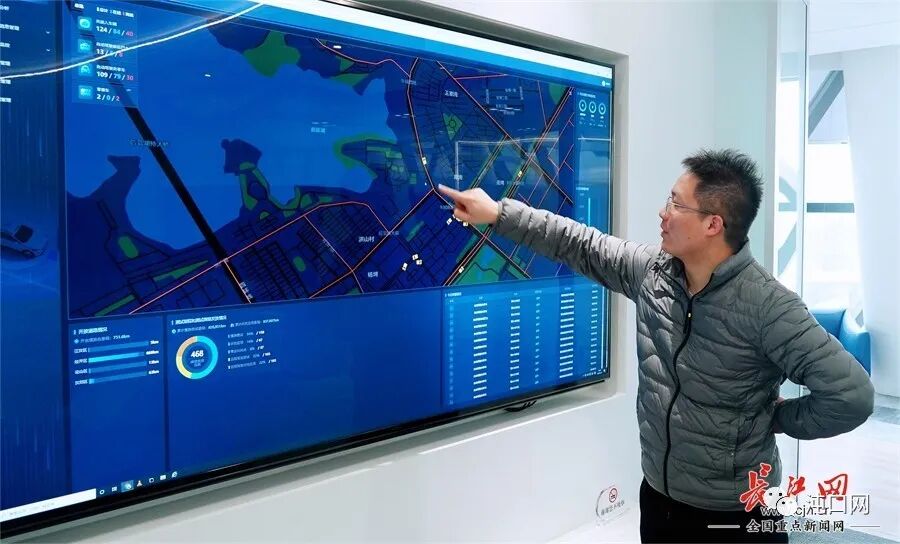 在监管平台前,凌彬洋正查看智能网联汽车是否在规定测试道路上安全行驶。长江网记者王海 摄