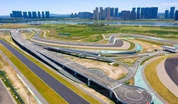 这条建设在天然河畔的生态型国际二级赛道,设17个不同半径的弯道,可进行极限工况测试、性能测试、急转弯盲区测试和5G远程驾驶测试,也可以开展智能网联汽车竞赛活动、F2方程式赛车竞速比赛。