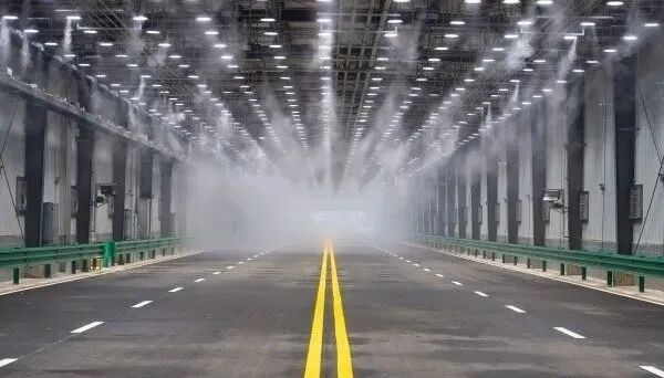中建二局项目总工刘浩介绍,这是全国首个室内集成全部天气环境的测试仓,雨、雾、雷、电等极端气象场景堪比“实景”,由1300盏灯、4000个喷头、2万米的管线组成,以灯光为例,不仅模拟清晨、午后、黄昏等时段,还可以模拟远光、眩光等效果。