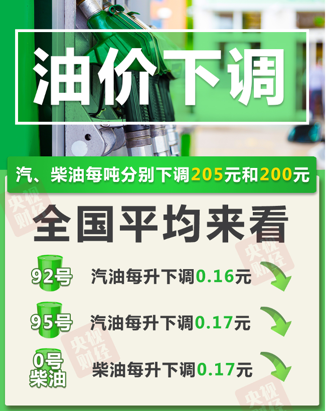 95号汽油每升下调0.17元;