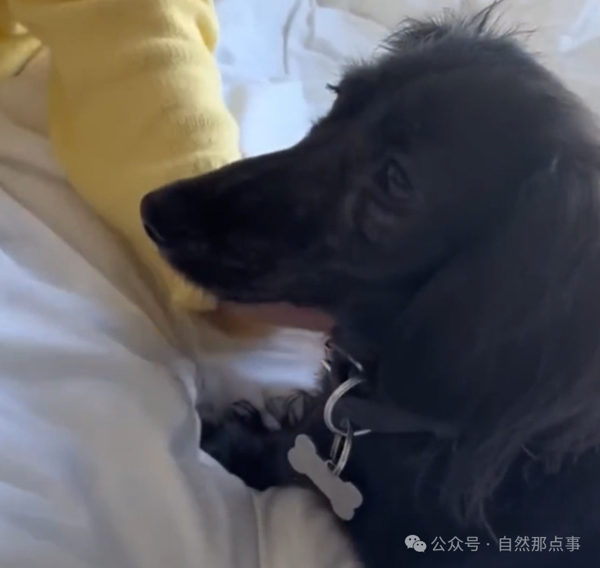 狗狗来到朋友家非常开心,也不怕生,跳到床上跟狗主人的朋友玩,没想到朋友紧紧是摸了一下狗狗,狗狗就开始疯狂打喷嚏,一直不停打喷嚏,连打12个。