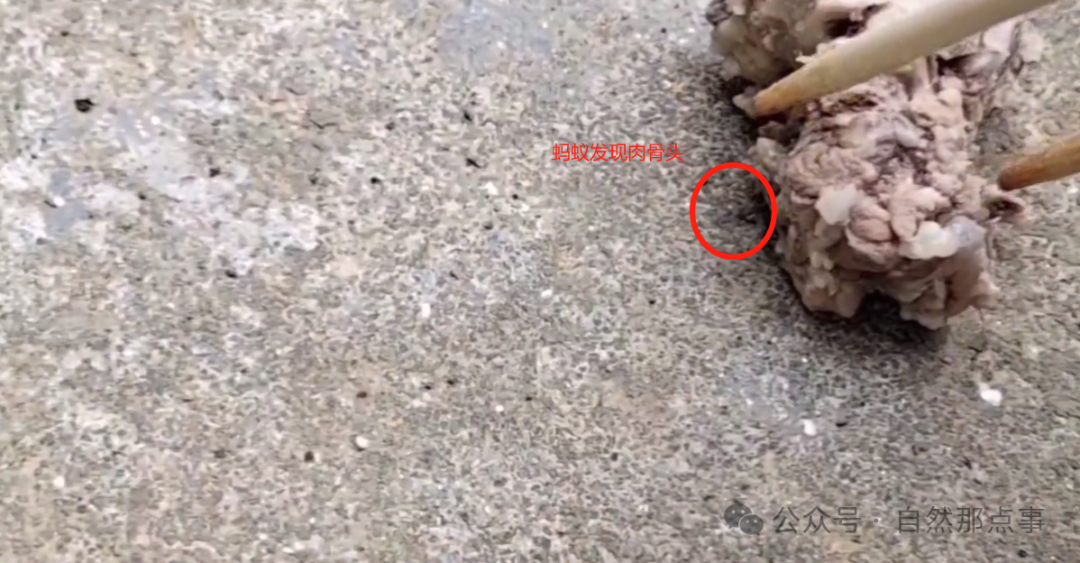 当第一只蚂蚁发现了肉骨头后,它立刻转身跑回了巢穴,去报告这个好消息。男子见状,趁机将肉骨头换成了更大块的肉骨头,想看看蚂蚁们会有什么反应。