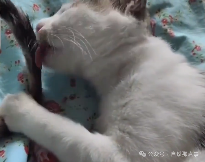 一名铲屎官一大早起床,发现自家猫咪的尾巴断了!是的,你没听错!就是突然断了!但令人意外的是,猫咪似乎毫不在意,一脸淡定地继续舔毛,甚至还抱着断尾舔来舔去。