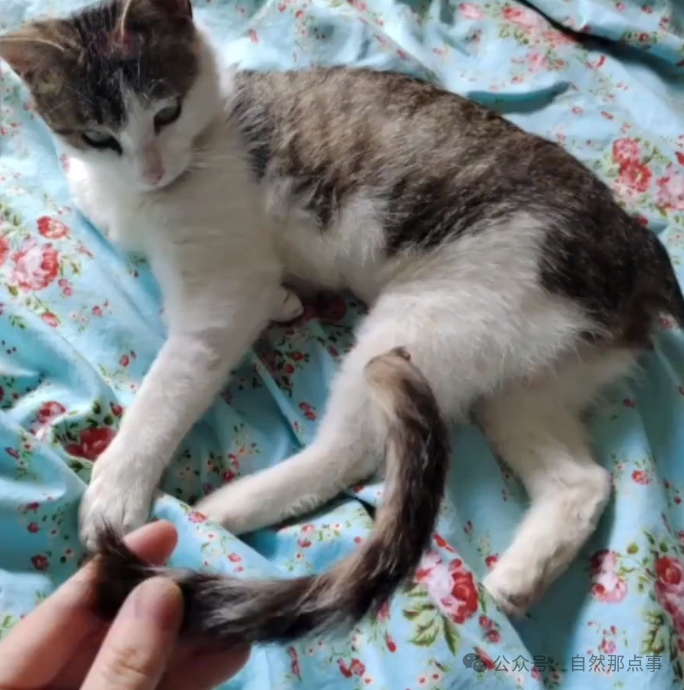 还有网友分享自己的猫咪:我家狸花白也是这样,当时很小,从野外捡回来,看他尾巴怎么硬邦邦,以为是沾了脏东西,就准备给他洗洗,结果洗的时候尾巴就那么掉了,吓得我呆立了半天,可是人家啥事没有,也没去医院,也没包扎,就用碘酒消消毒,自己就长好了。