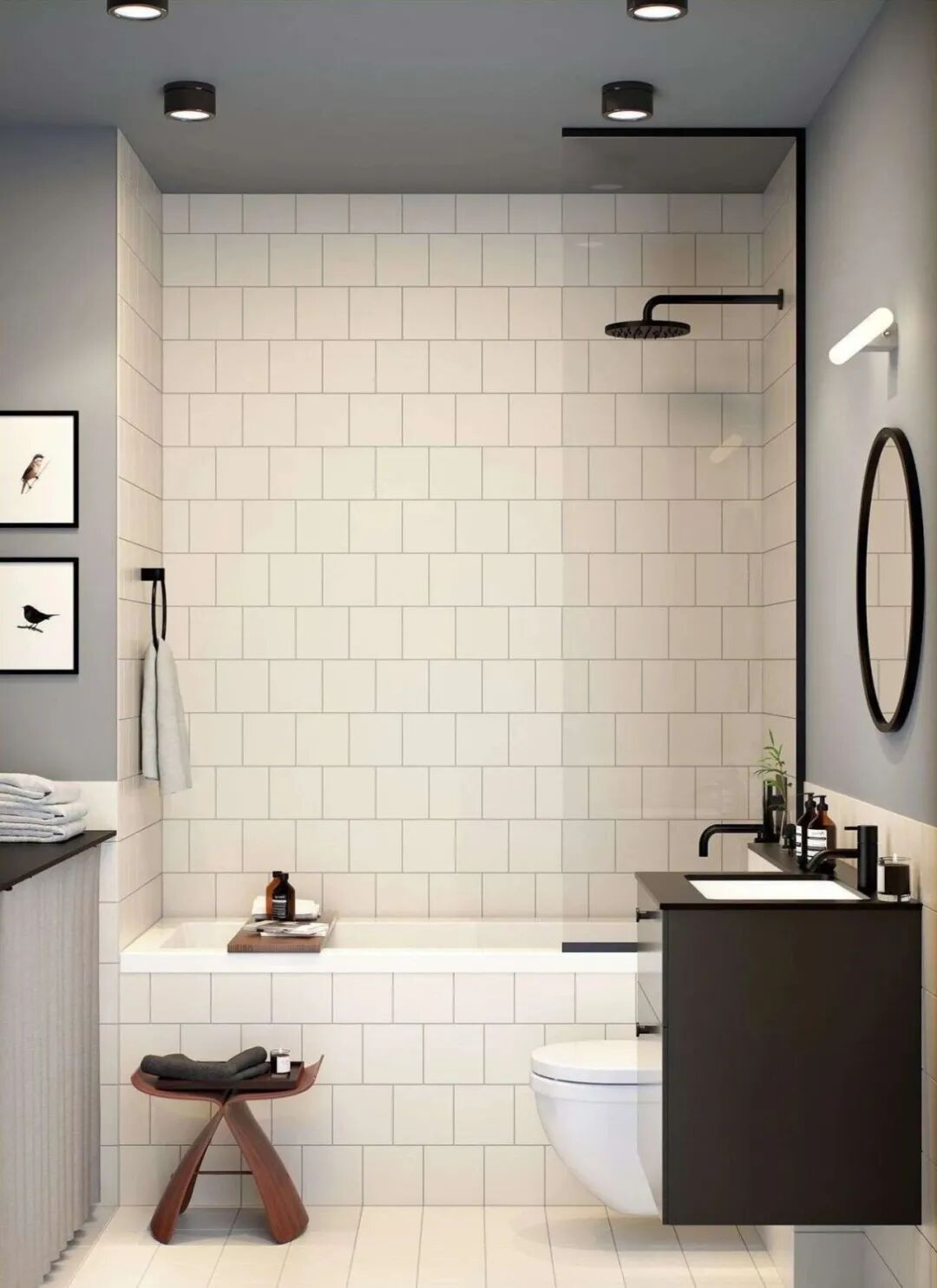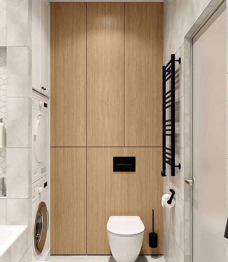 水箱入墙,上方空间还可以作为置物台。如果做了假墙(进深>10cm),则可以搭配壁龛、柜体使用,更省空间。