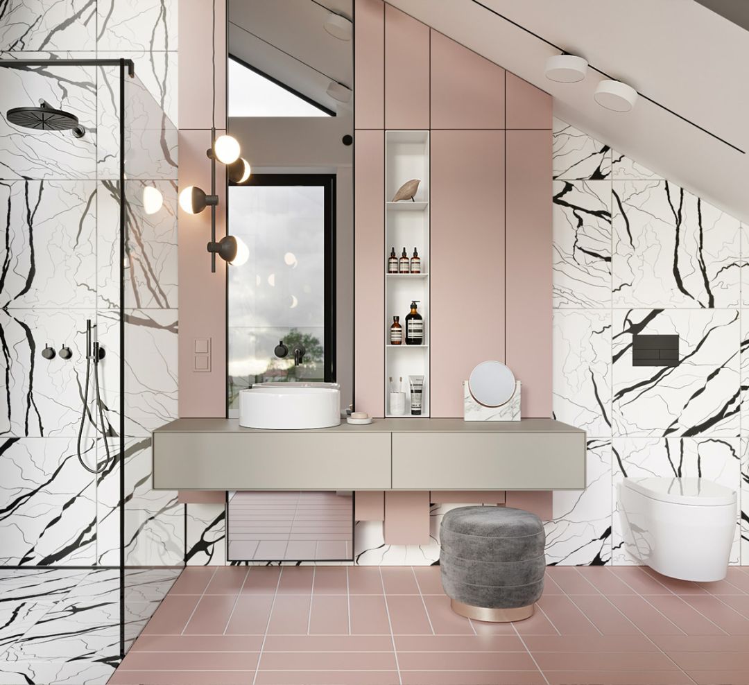 如果墙体条件允许,可以再挖一个进深10cm的壁龛放洗漱用品。