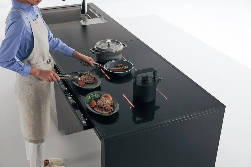 光有概念可是不行,素质可要过硬才能赢得大家喜欢。橱柜台面下面镶嵌了IH电磁炉,既可加热又可保温,做菜吃饭都可满足。且电磁炉不是单方向的,坐在对面的家庭成员也可以直接操作而不用专门起身。