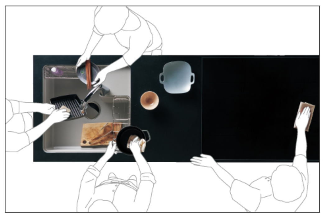 这款橱柜的设计概念也是如此,不同于以往的所有东西都靠墙放的L字橱柜,irori的基本的操作空间都集中在岛台上,这样的话,做饭不再是孤独的一个人,而是成立家庭成员交流和分享的快乐空间。