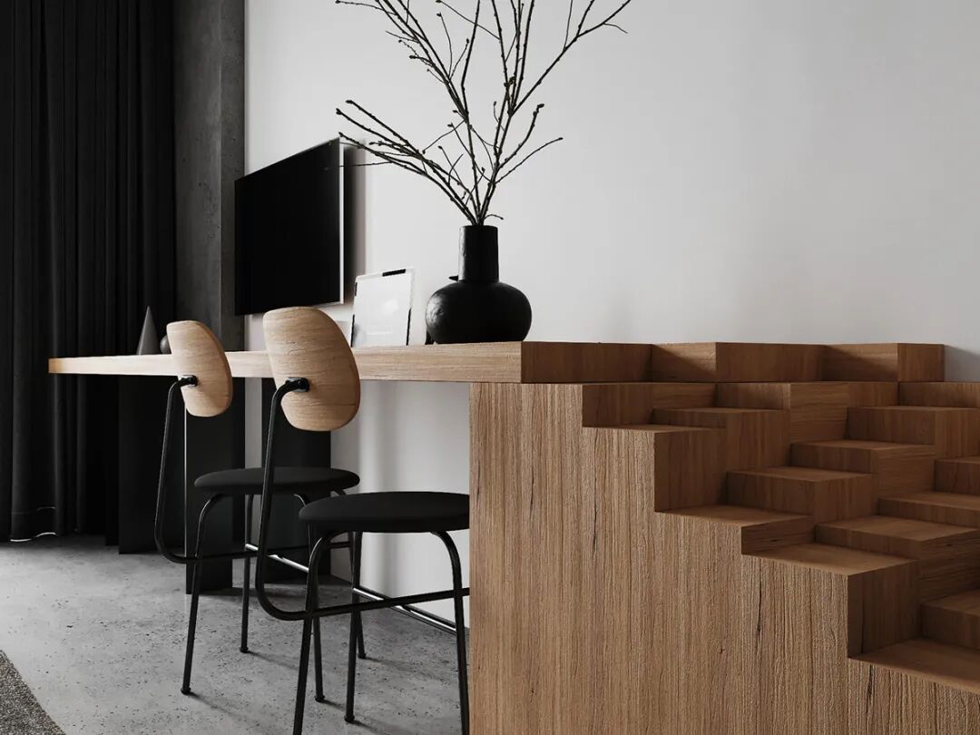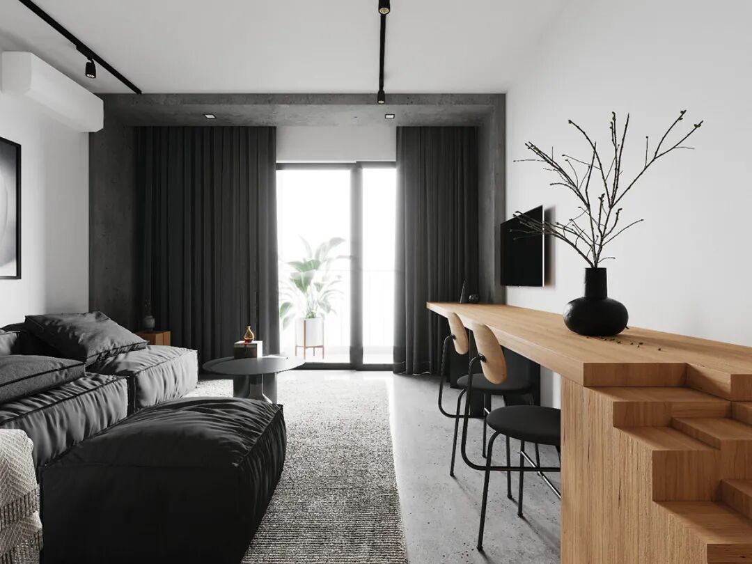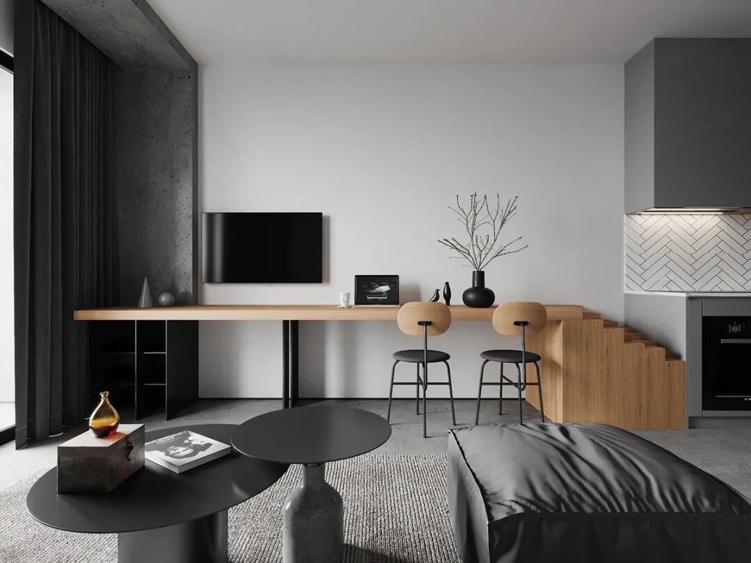 要说小户型怎么才能拿捏好宽敞与拥挤之间的那道分界线,那必然是空间的极致利用。木色条型长桌,中和暗色的同时直接满足就餐、工作、学习、阅读等四大功能,即便是家中待客,这样一面大桌子也是想放就放,不显拥挤。