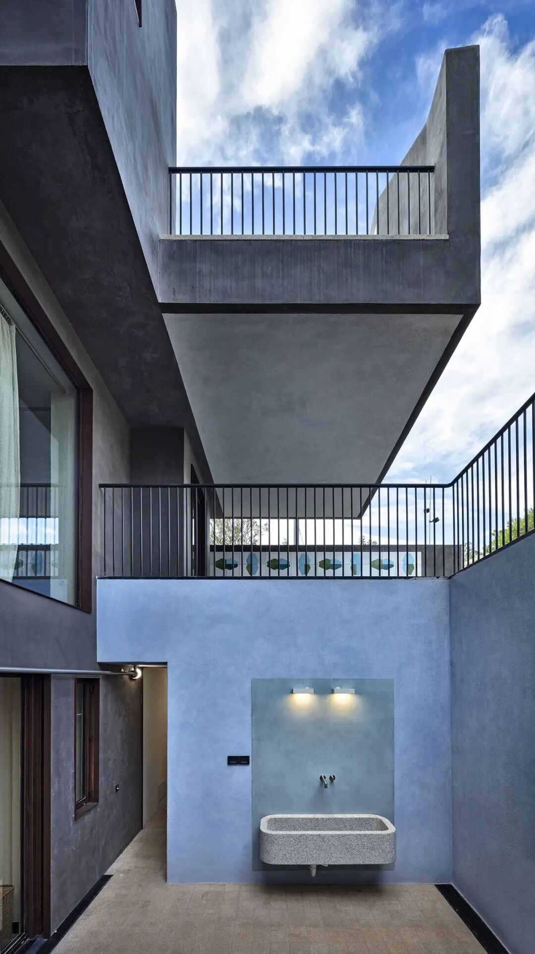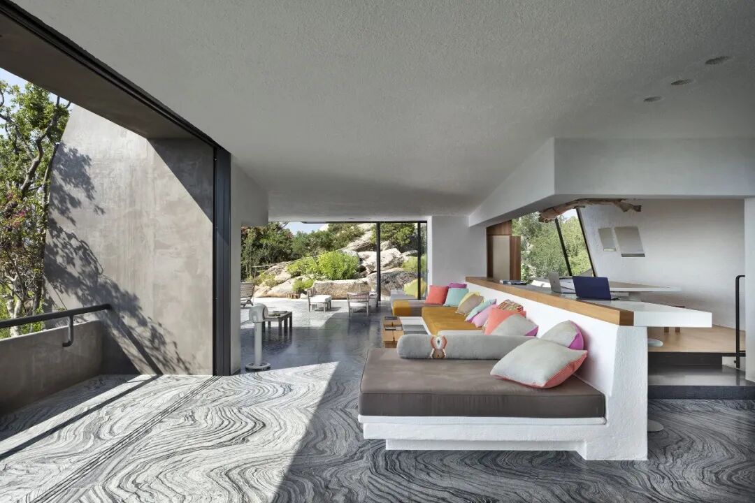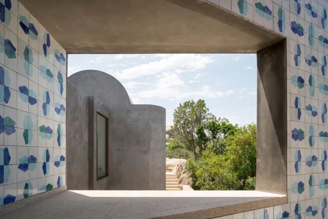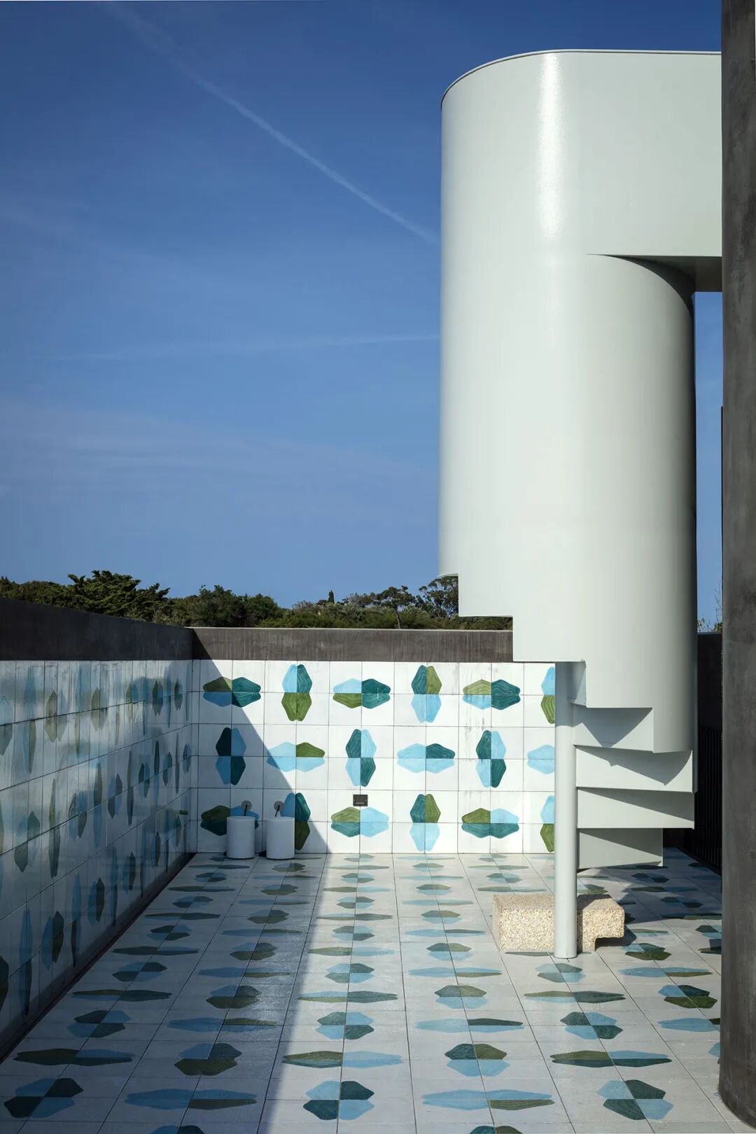 室外露台上使用的花纹瓷砖则使灰色的外观变得柔和,呈现出与当地植被和海洋相呼应的蓝绿色调。