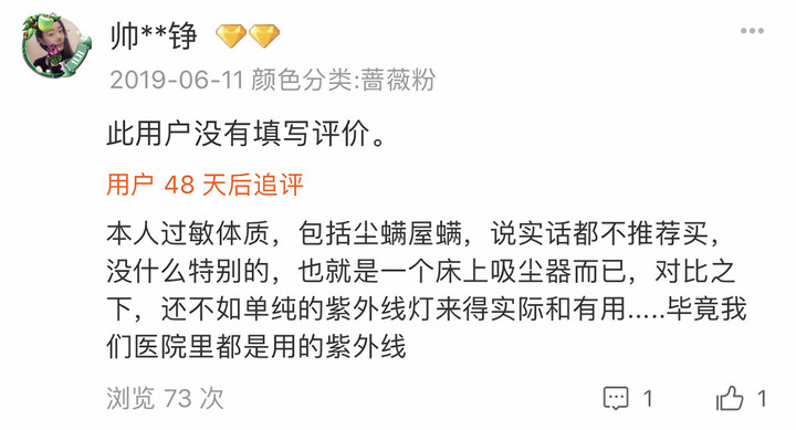 但实际上,除螨仪的原理就是配置了紫外线灯的吸尘器;也就是说,任意一种吸尘器换个吸头,都能达到和广告里一模一样的效果。紫外线UV-C的确可以杀死螨虫,但这需要长时间的照射,像是除螨仪那样在床品上一扫而过就想达到除螨效果,基本上是不现实的。