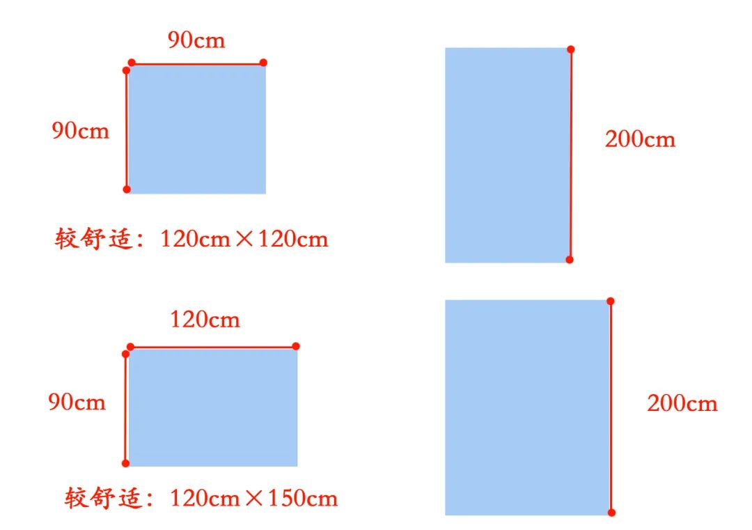 沙发大小最好别超过150cm×95cm,建议选择双人沙发或小型三人沙发。