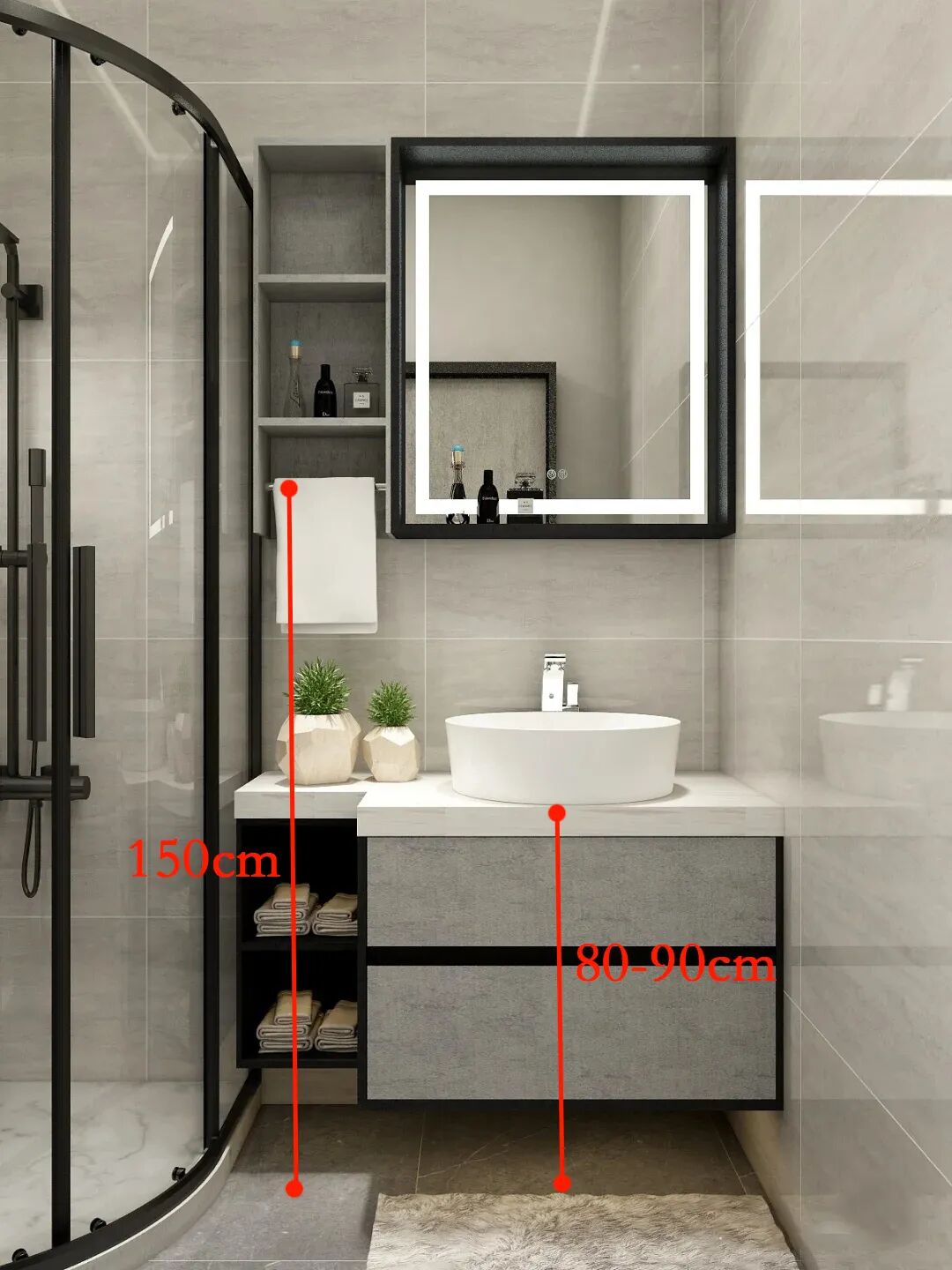 正常尺寸90cm×90cm,需要帮孩子洗澡90cm×120cm,较为舒适120cm×150cm,高度2m。