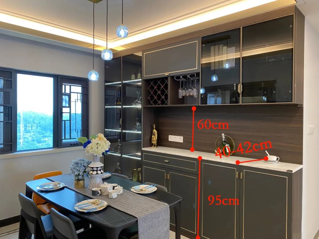 深度40~42cm,若嵌入电器可根据电器尺寸调整。隔板高度60cm左右, 台面高度95cm左右。