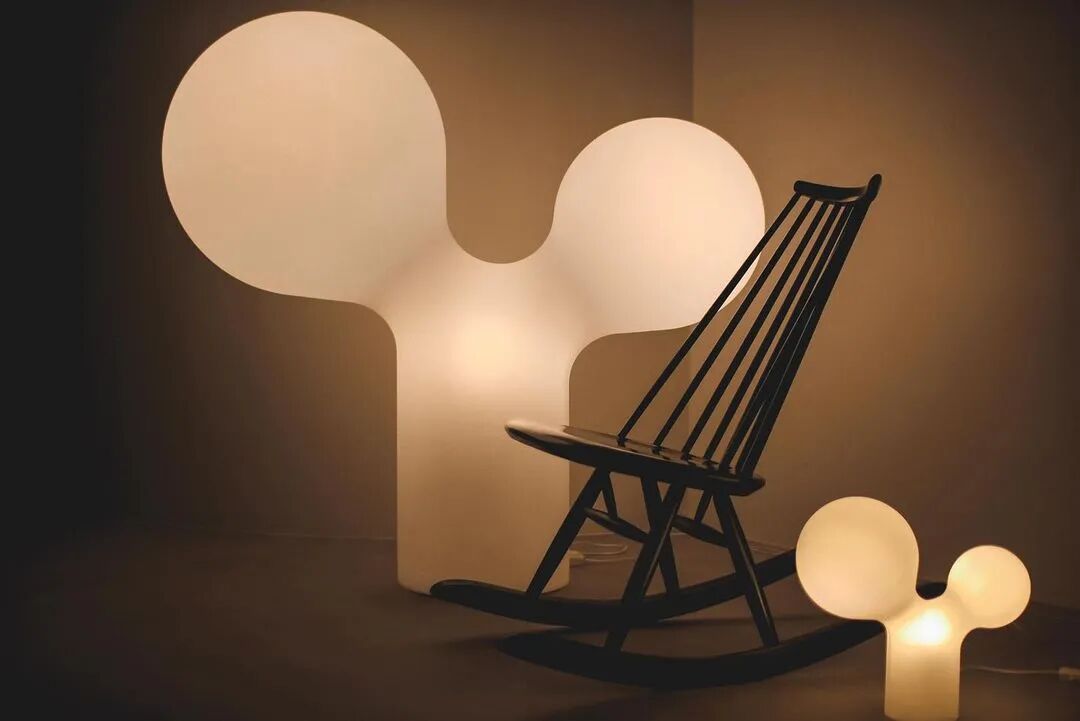 相信很多小伙伴看了前面的图片,已经对这个奇形怪状,像小精灵又像米老鼠的灯印象深刻吧。这个灯是Studio Eero Aarnio的作品,没错,又是北欧设计,大尺寸的人民币1万左右。