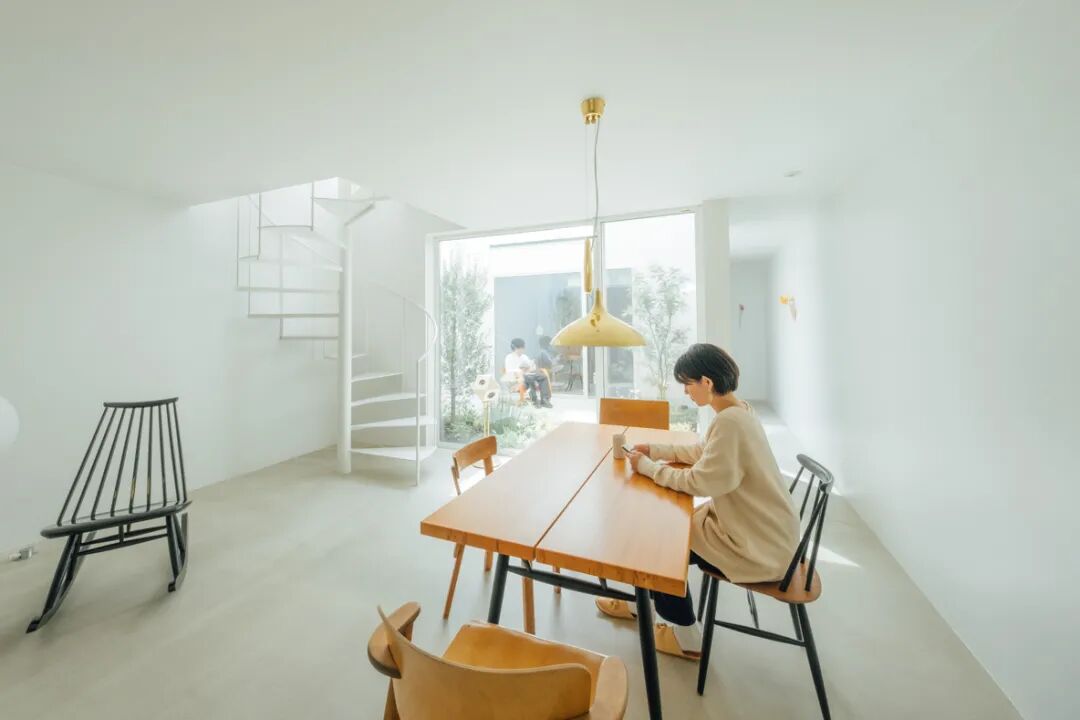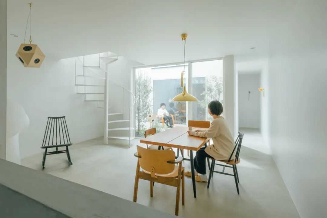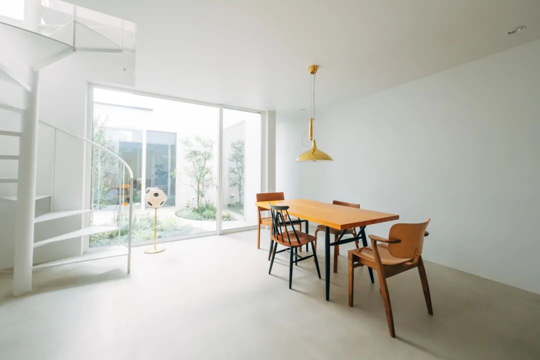 房子里最引人注目,同时也是夫妇俩最引以为傲的空间是这个美爆了的中庭。夫妇俩特意没有像一般做法一样弄成木平台状,而是选择了和房间一样的材质,从而起到了延伸空间的效果。