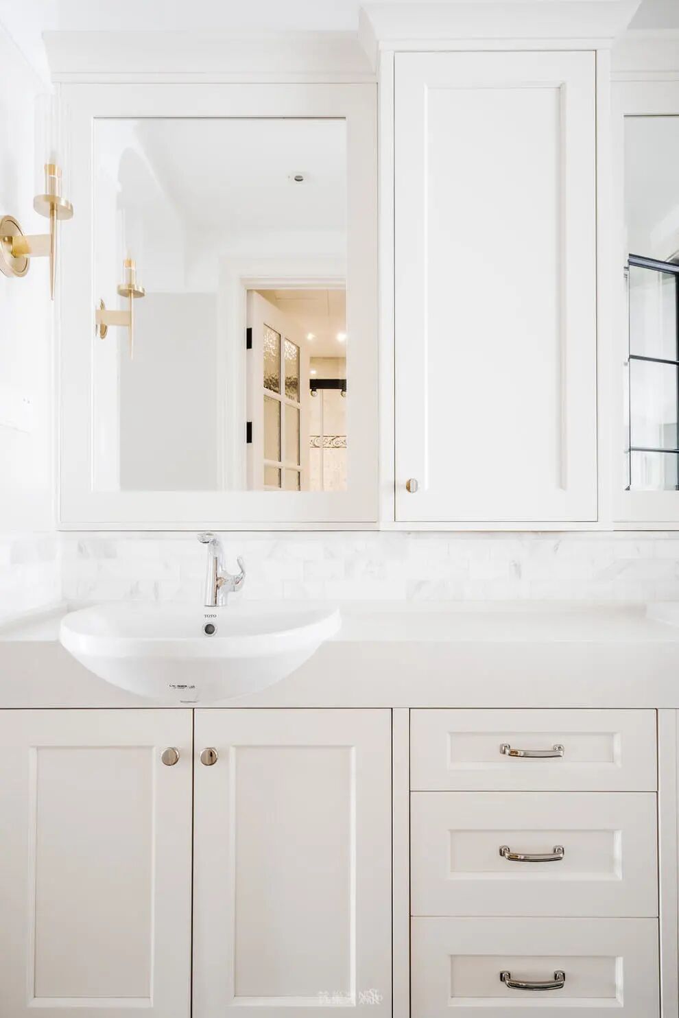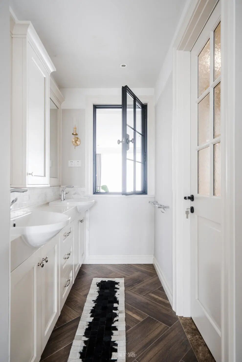 依据家庭成员的需求,卫生间设置成干湿分离,而洗脸盆则为两个,更方便晨起洗漱,干区的储物空间非常充足,不论是儿童或是大人的物品都能被收纳地井井有条。在一个二孩家庭里,安全、整齐、干净是最重要也最难维持的诉求,设计师通过改变空间布局与收纳系统,也对空间的可持续利用起到很大的帮助。
