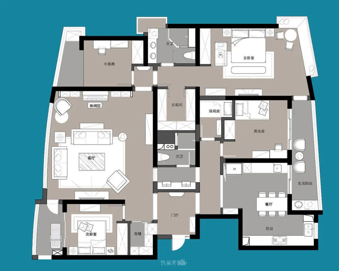 本案位于上海,是一个220㎡的大平层,现代美式设计令每个空间都散发着阵阵灵动和雅静;男女业主外加两个宝宝会长期生活在这里,在设计的时候,除了满足男女业主的基础功能需求之外,还将孩子的房间进行了合理的布局和规划,甚至将保姆房安排在临近孩子房旁边,方便起居照顾;除此之外,储藏室的设计也让生活多了收纳,空间真的是一应俱全,足显设计师对空间设计的精益求精。