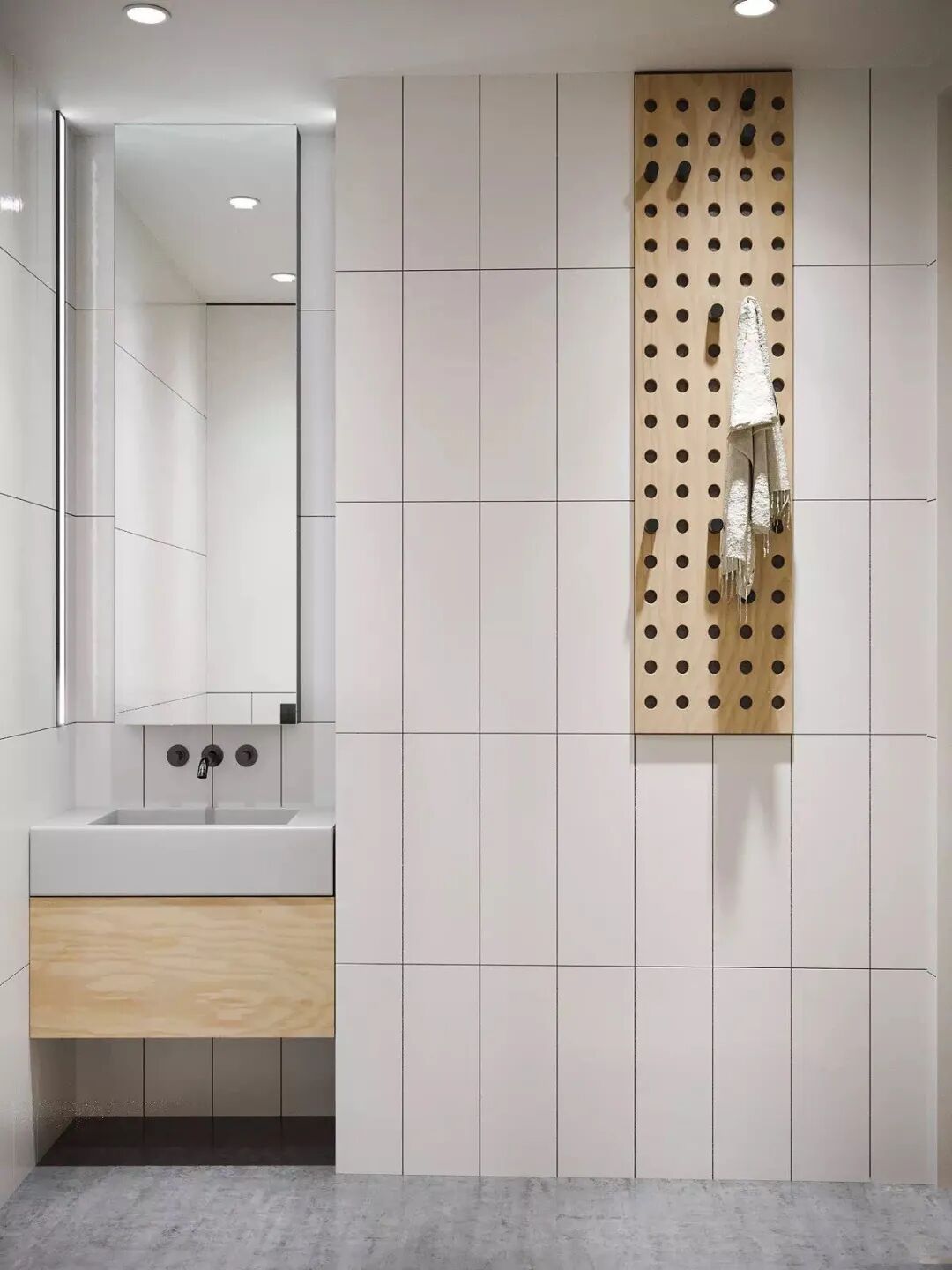 洞洞板:将毛巾等不适合捂在柜子里的物品收纳上墙。