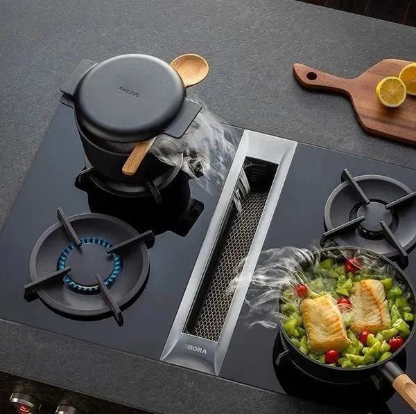 2、厨房如果空间有限制,灶台必须安装在靠窗户的位置,做饭时窗户建议不开。油烟问题,可以选择集成灶下排式排烟系统,油烟热气升出“5cm”就会被吸走,没有占地的油烟机一样能做到洁净无烟。▼