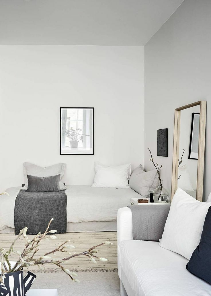 1、将镜子移动到在床上看不到的区域外,眼不见为净,比如可以将镜子放在床头齐平的位置。▼