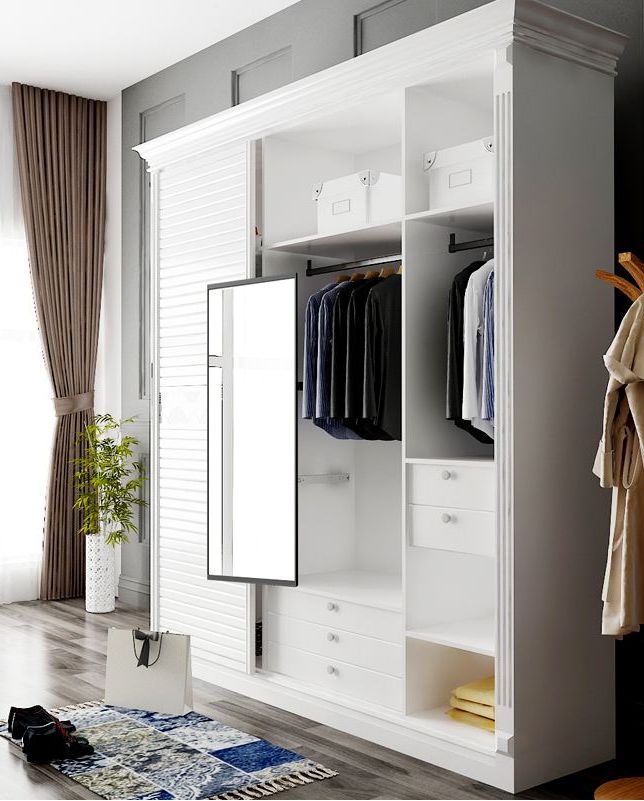 2、镜子可以选择移动隐藏式的设计,需要时打开,不需要时隐藏,避免床对镜子的问题。▼