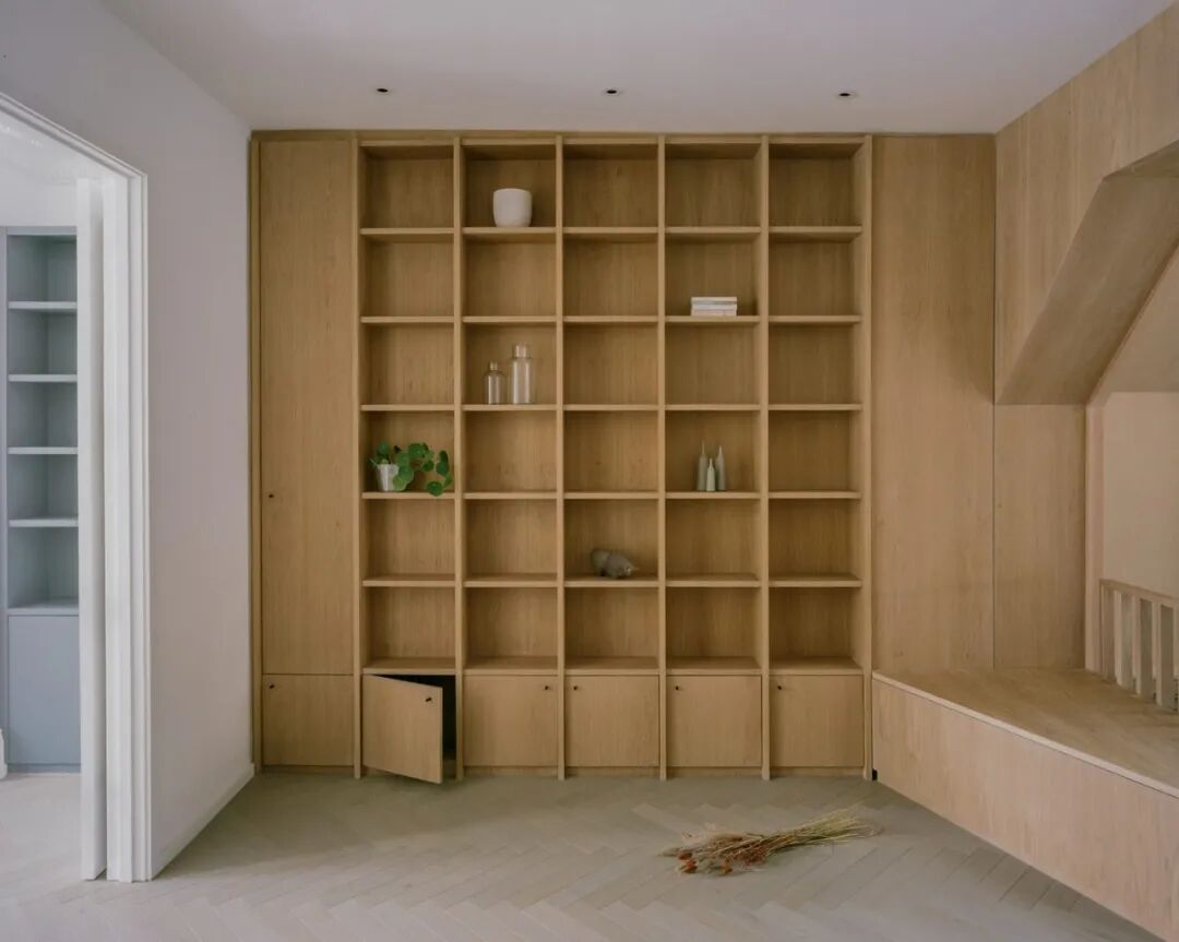 然而并非总是如此,比如浅层架子可以展示收藏品,而不会使空间变得更窄。这是因为开放式货架不会减去空间深度,而封闭式橱柜会缩短视野。