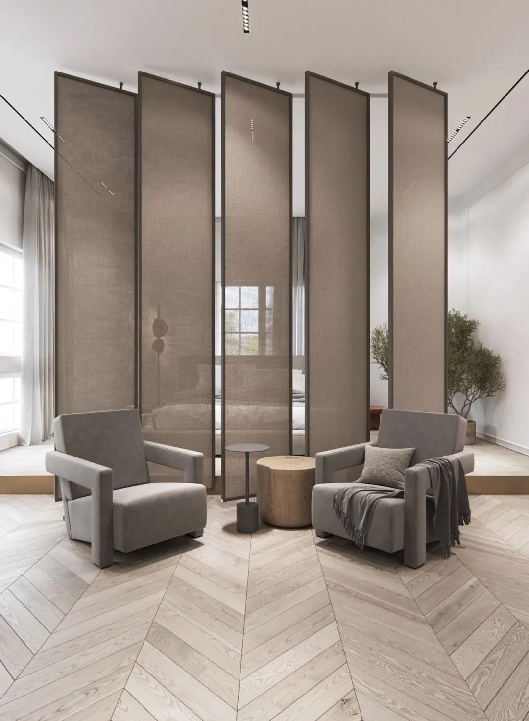 隔断的材质和款式都不一样,有木质、金属、玻璃和布艺......不同材质的质感自然会不同,你在选择的时候可以根据空间功能规划、采光、价格和生活需求等综合考虑,本身来说,隔断就是一种装饰手法,100%给空间逆天的美感!
