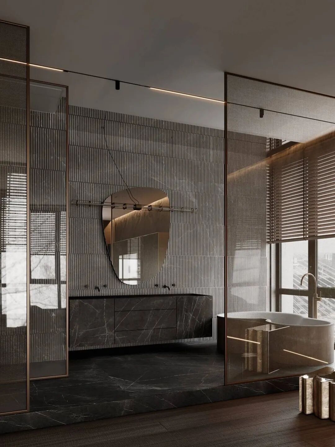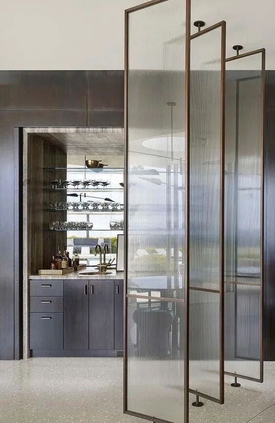 生活中,最初常见的就是卫生间的玻璃隔断,妥妥解决了干湿的问题,还不影响采光。