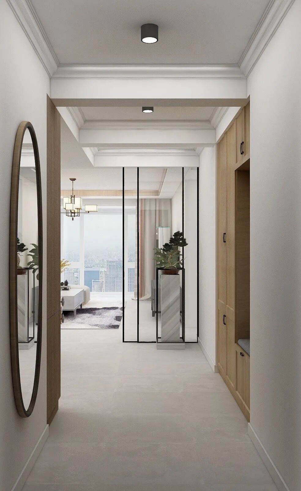 现在,很多人买的房子都是入户门对着窗户,据风水学说这样容易漏财,很多传统的方式,会在玄关区打一组隔断柜,过时不说,还不易清洁,时间一长就落灰,现在流行用隔断更改空间气场。