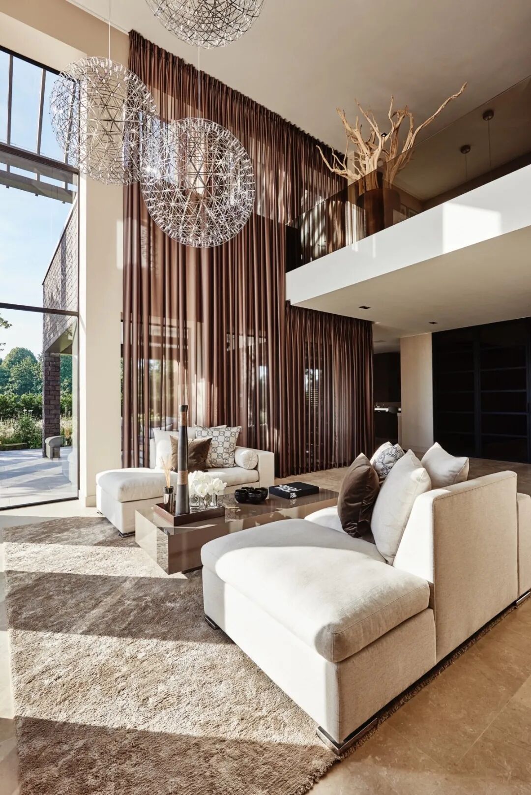 不过,像这种通体落地的玻璃+布艺隔断装饰的方式,少了硬朗多了轻盈,简直美到逆天。