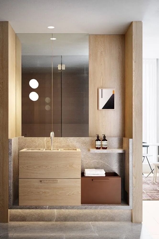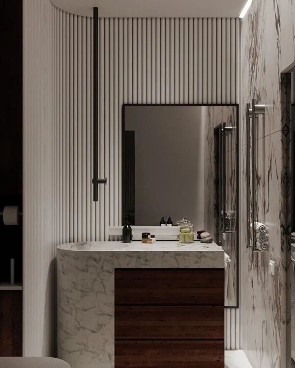 而那些容易被忽视的管道,埋进墙里后剩余的空间做一个收纳柜完全没问题,收纳空间大大增加。相比墙排,地排的管道需要柜子包裹,包裹了管道的柜子,储物能力也不如之前。