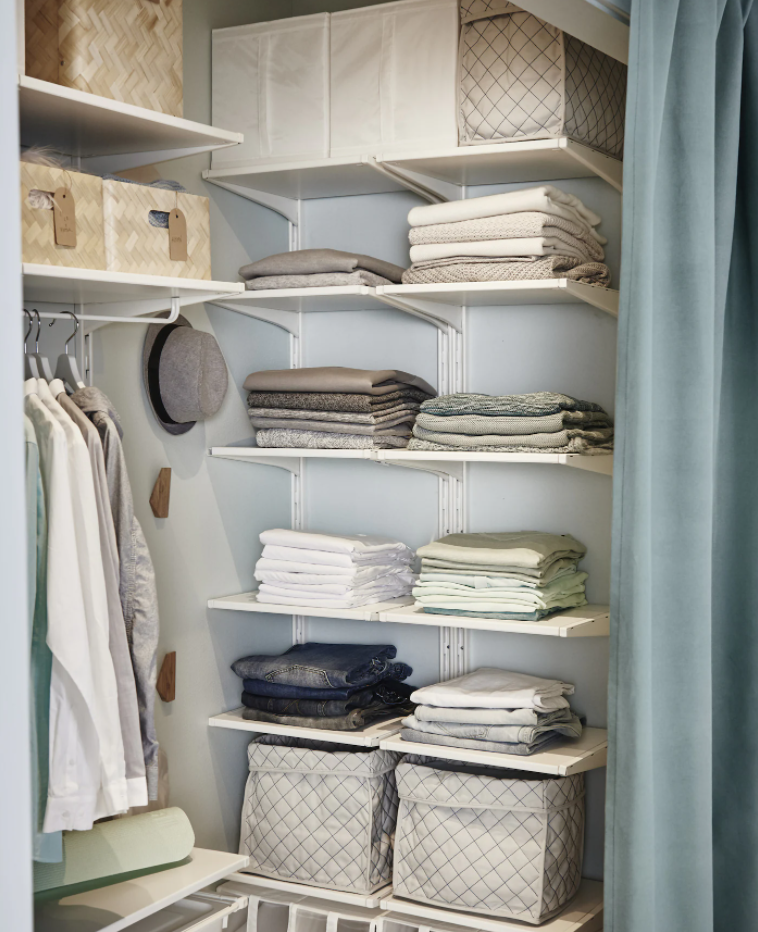 看看这灵活多变的组合,既能展示所有物品,又能合理的储存衣物,最重要的是它能合理利用有限的空间,根据不同空间大小调整尺寸,对于房屋面积不大的住户来说,简直就是完美的存在。