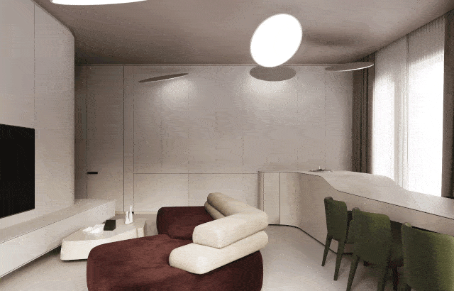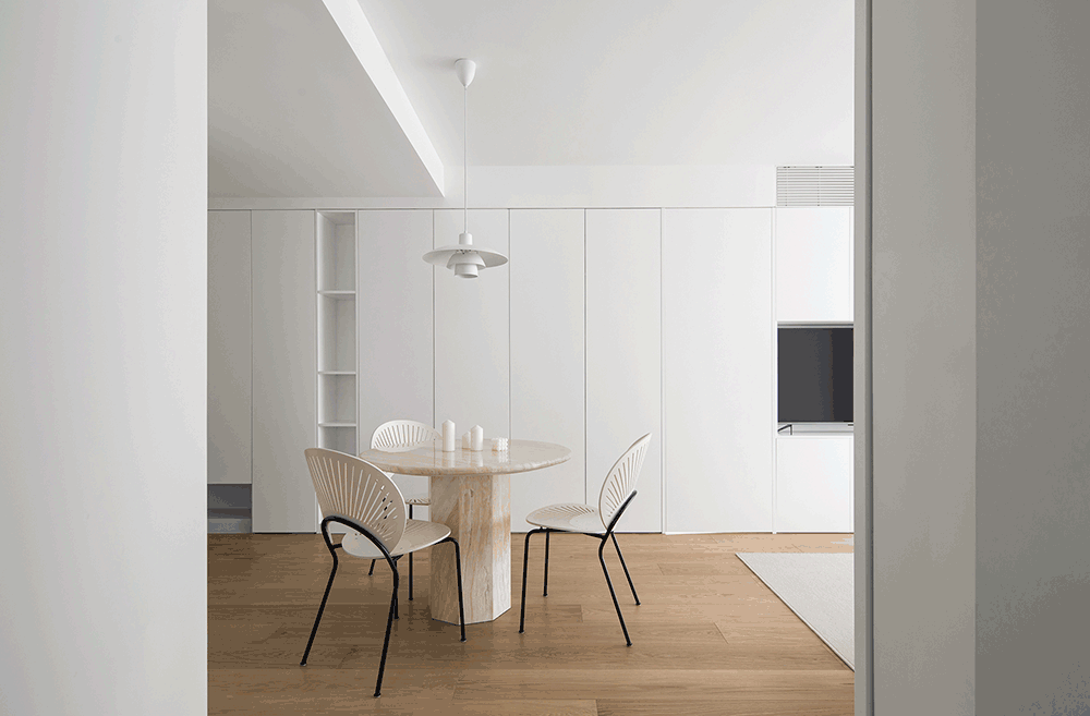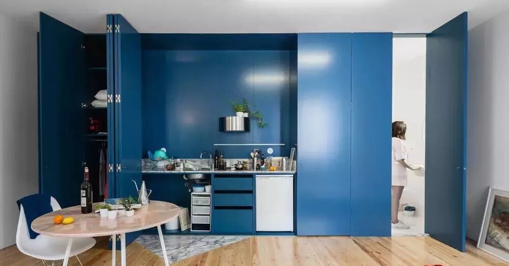 整个厨房消失于柜门之后,门可折叠、推拉,关上后琐碎家务的烦恼也一扫而空。