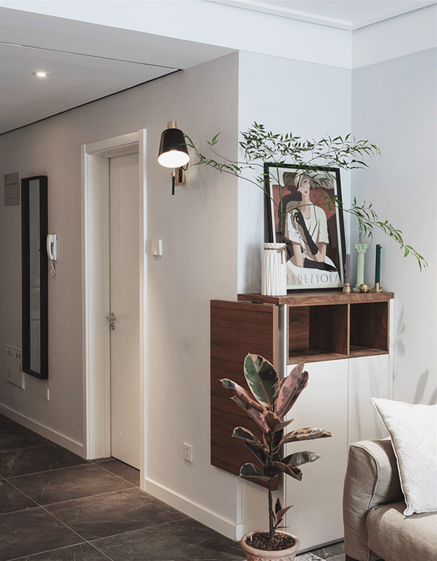 玄关柜与墙面齐平,视觉上更加简约干净。