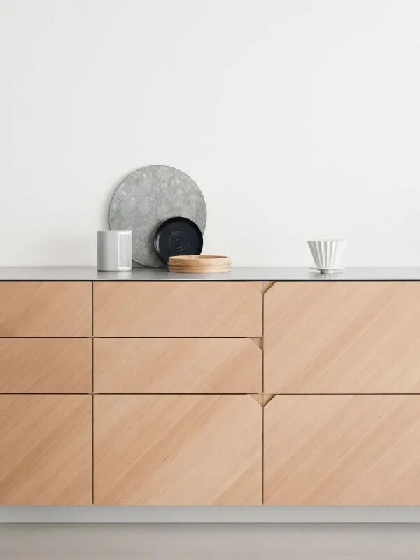 还有一种是利用柜门之间的槽位(一字型、半圆形凹槽等)、或柜门边角做把手,轻轻一拉就能开关。