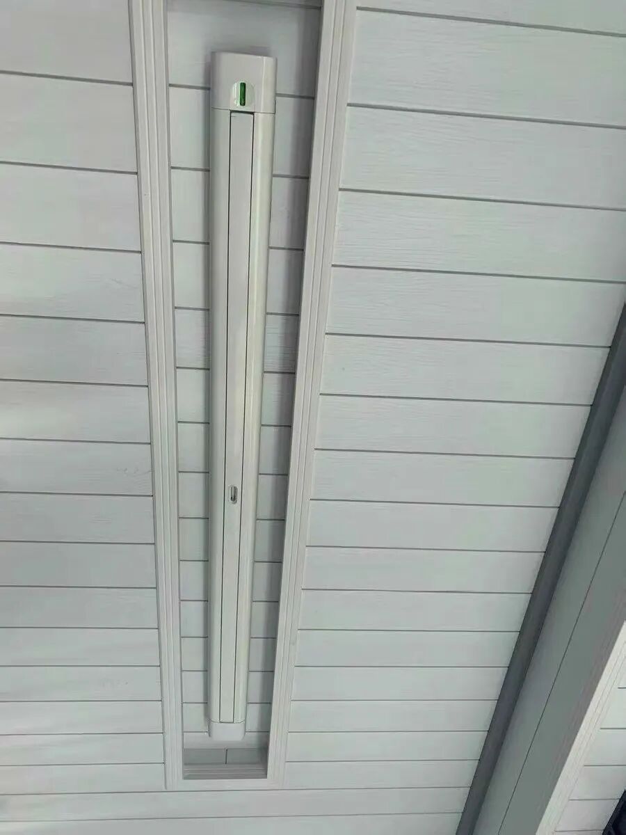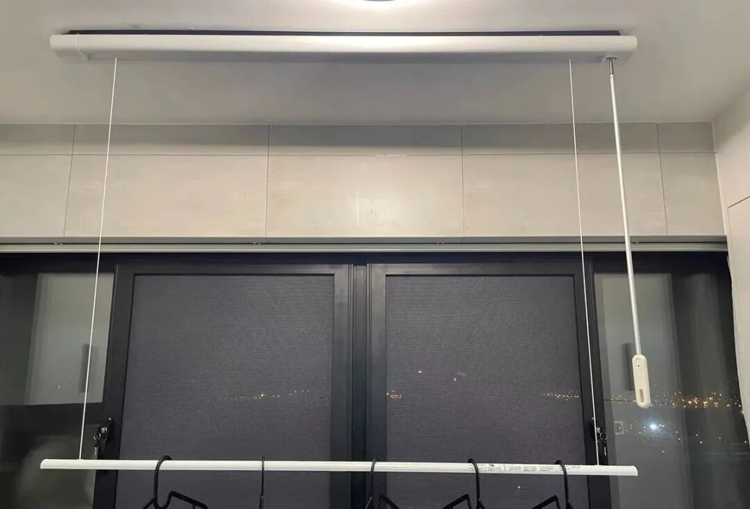 落地式晾衣架太占地,普通升降式晾衣架体积大、存在感强,现在流行的可升降隐形晾衣架体积小巧、升降方便,还能嵌到吊顶中更加隐形美观。