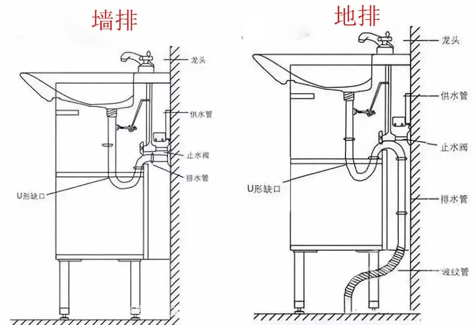 除了传统的地排外,还有一种排水方式——墙排,它是通过在非承重墙上开槽,将马桶、花洒、洗手台的排水管藏起来,排水从墙体走,从而让水管隐形。