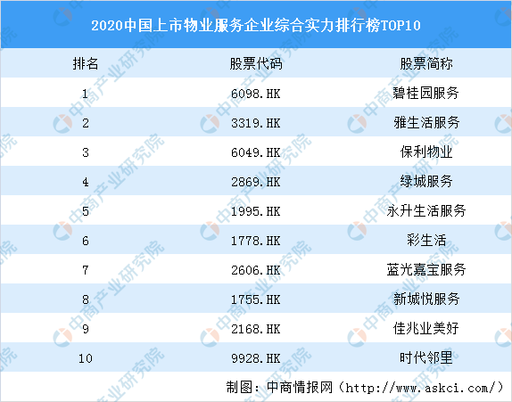 今年5月份,中国房地产TOP10研究组发布了2020中国上市物业服务企业综合实力TOP10榜单。