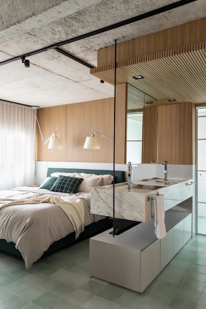 相比水泥硬隔断,玻璃隔断既能实现干湿分离,颜值高、省空间,透明材质对空间压迫感也最小。