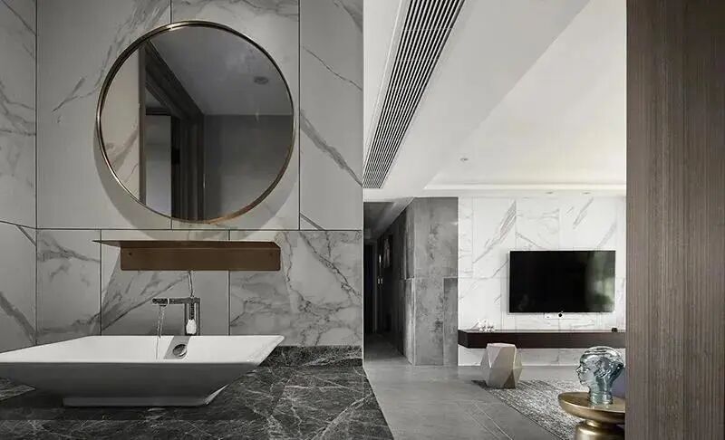 墙/地面:相比乳胶漆,墙纸,建议首选瓷砖,防水效果好、易打理。地面如果铺木地板,最好安装门槛石。