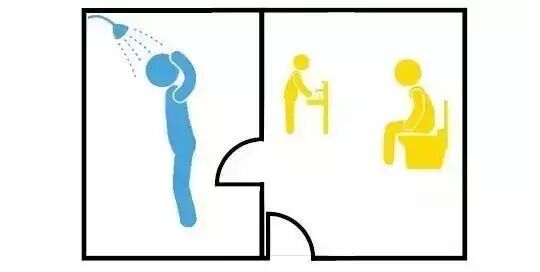 二分离对空间的要求最小,简单做个隔断将淋浴区与其他区域分开,足以达到安全、防潮、保暖等目的。